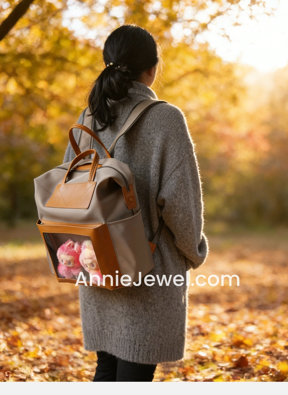 - Design: Nylon Ita Backpack With Clear Front Pocket For dolls Laptop Backpack Clear Window Display Bag