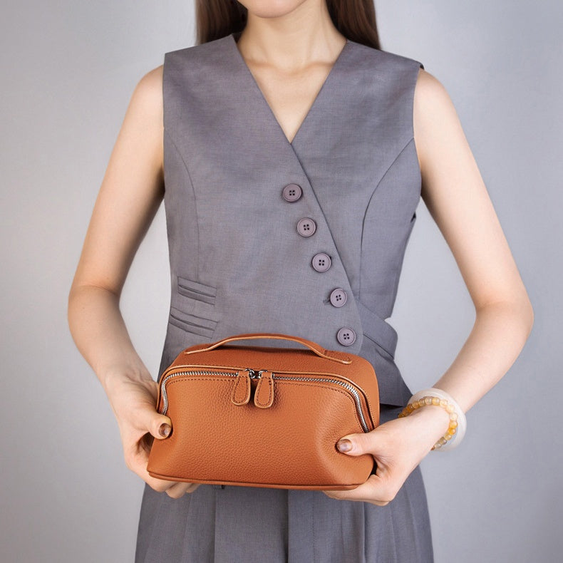 Discover practical elegance with our Genuine Leather Makeup Cosmetic&Toiltery Bags Purse Pouch is Crafted with premium materials, this stylish pouch is designed to keep your cosmetics organized while you travel.