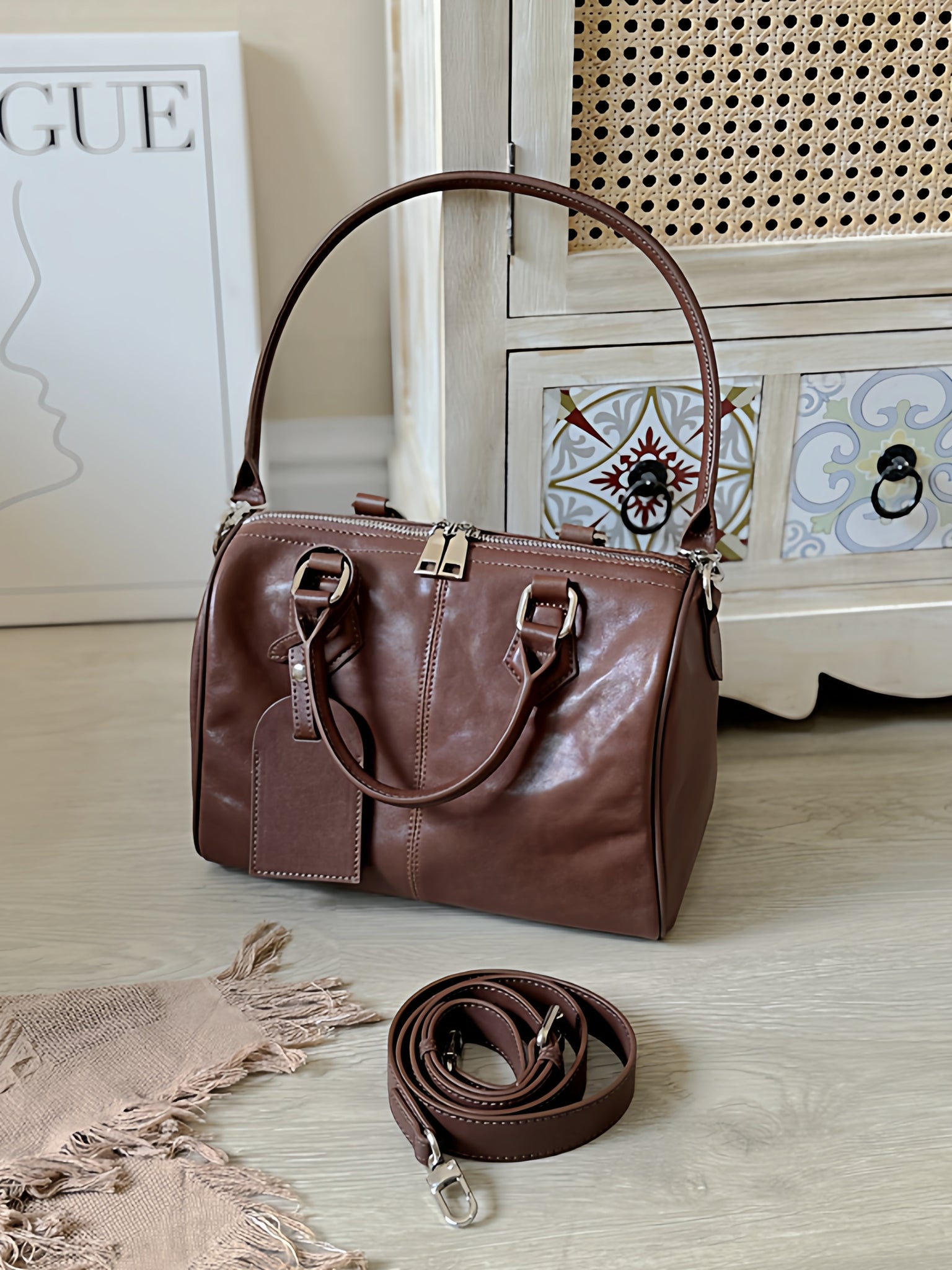 - Design: Womens Small Leather Boston Handbag Leather Crossbody Boston Bag For Ladies
