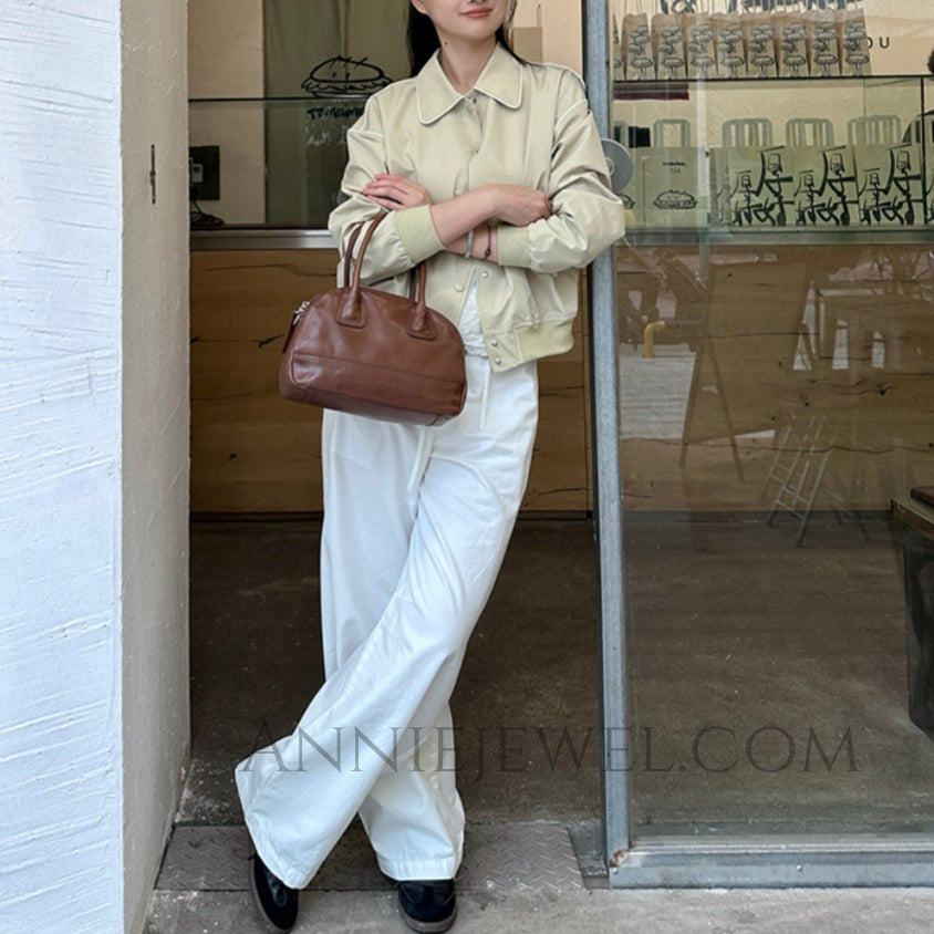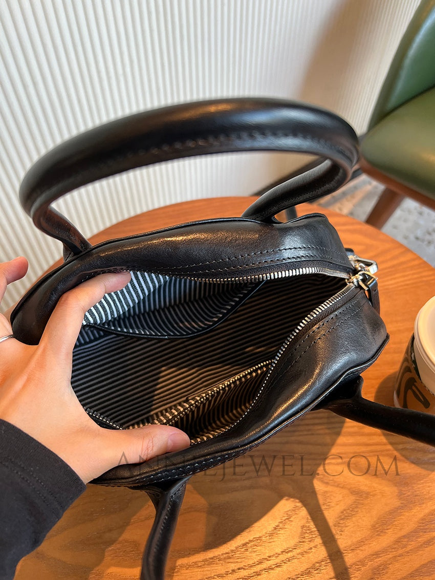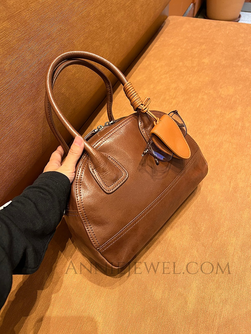 Womens Small Leather Boston Handbag Leather Crossbody Boston Bag For Ladies