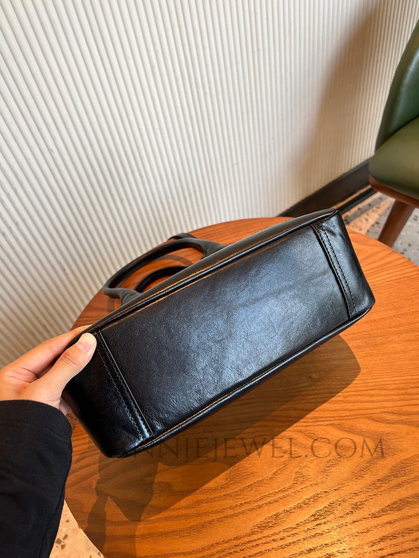 Small Genuine Leather Tote Bag With Zipper Womens Black Leather Handbag
