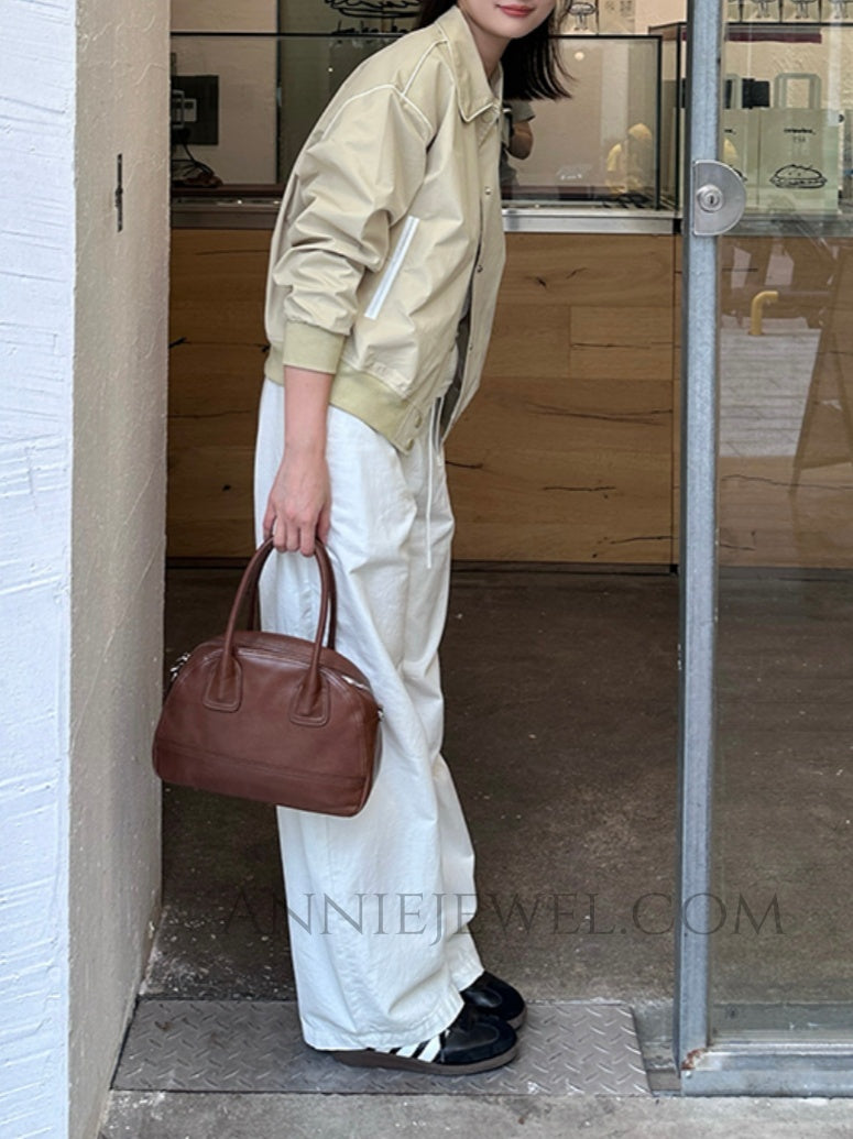 details of Genuine Leather Dome Satchel Handbag Women's Dome Satchel Bag - Annie Jewel