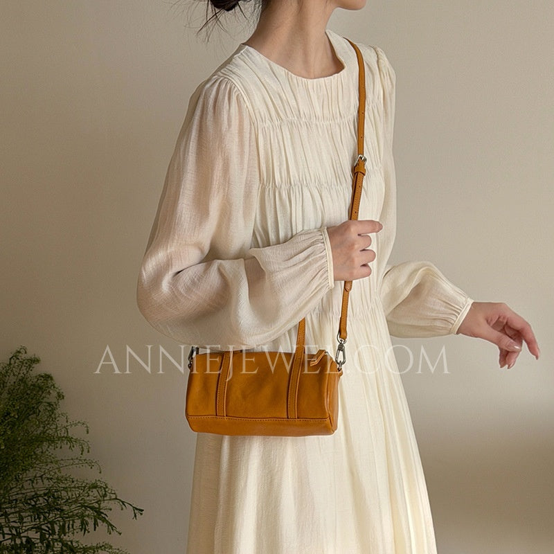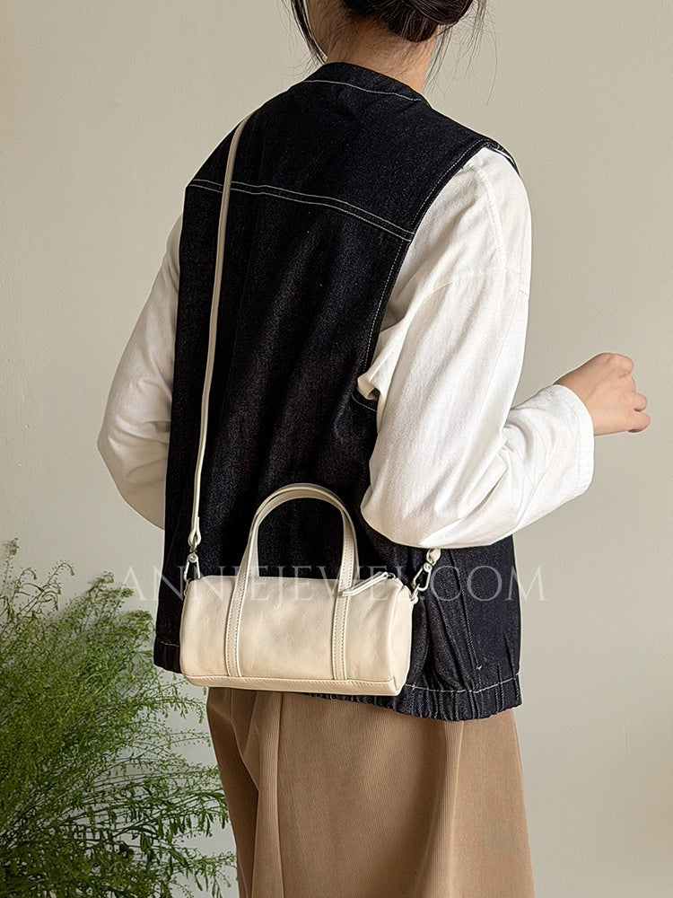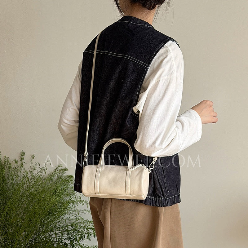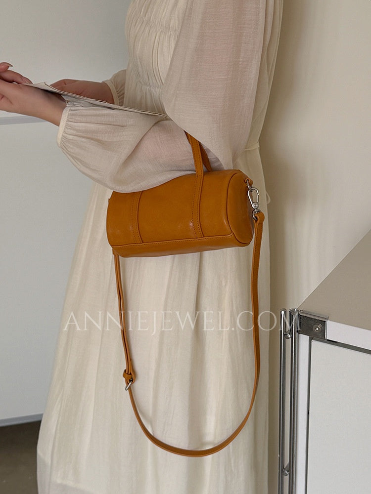 Mini Leather Barrel Crossbody Bag Small Leather Barrel Handbag Womens