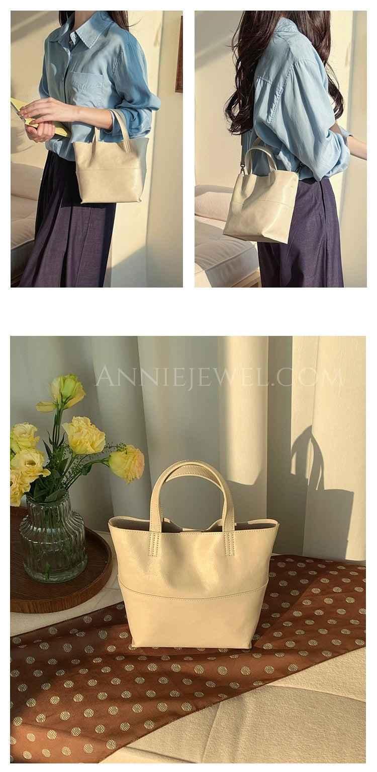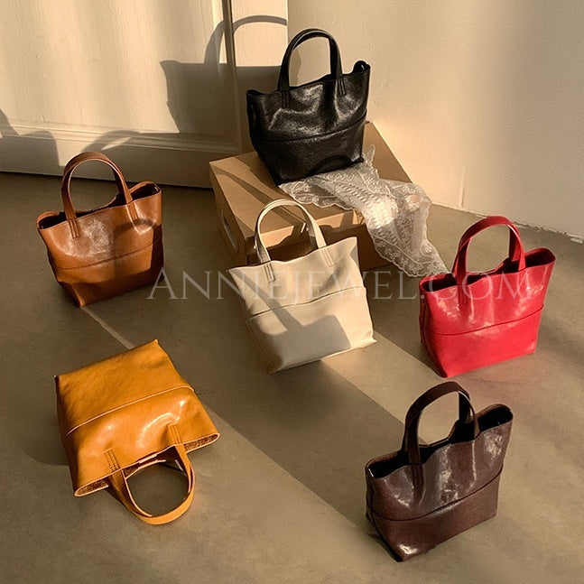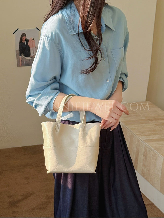 Women's Small Leather Small Soft Leather Purse Simple Minimalist Leather Tote Bag