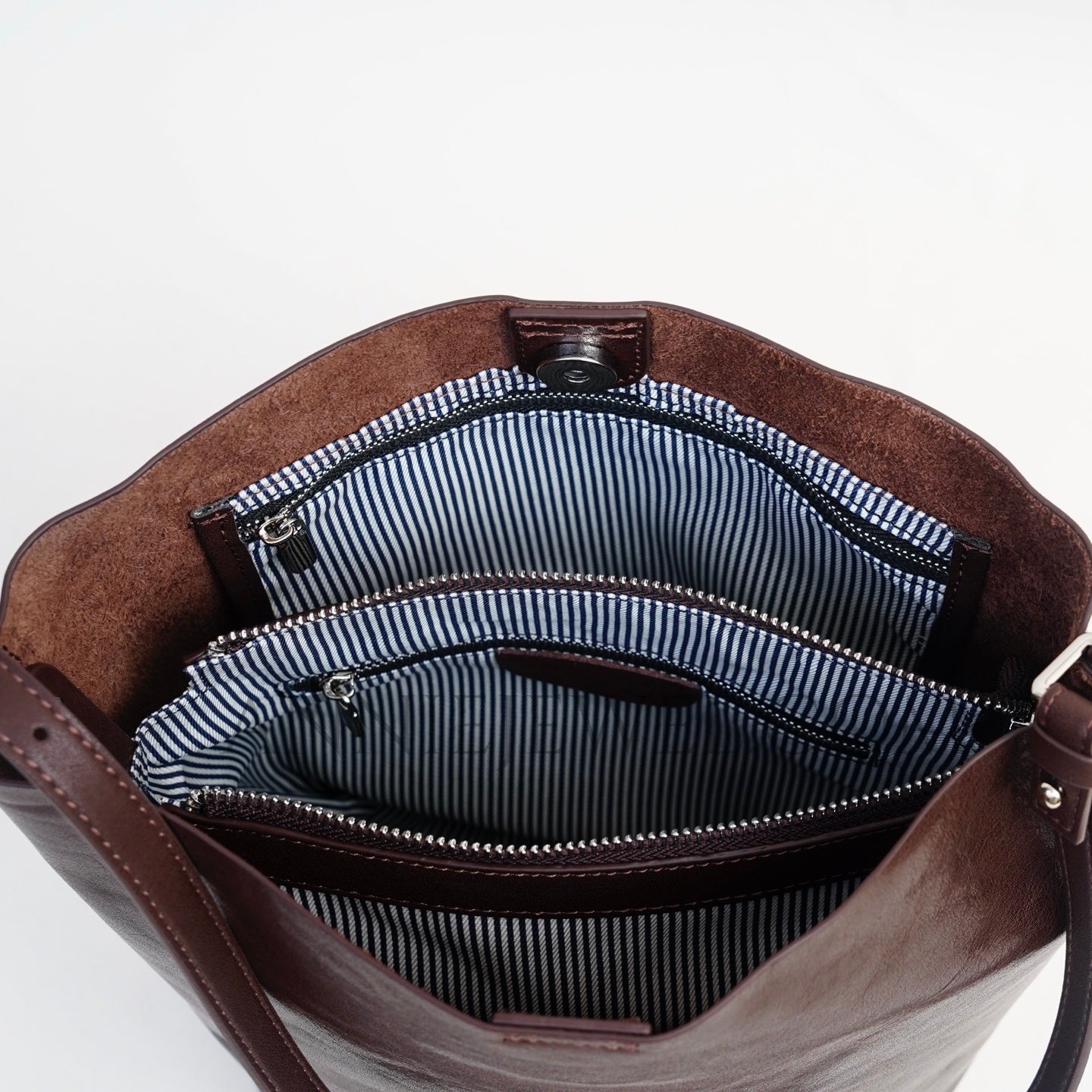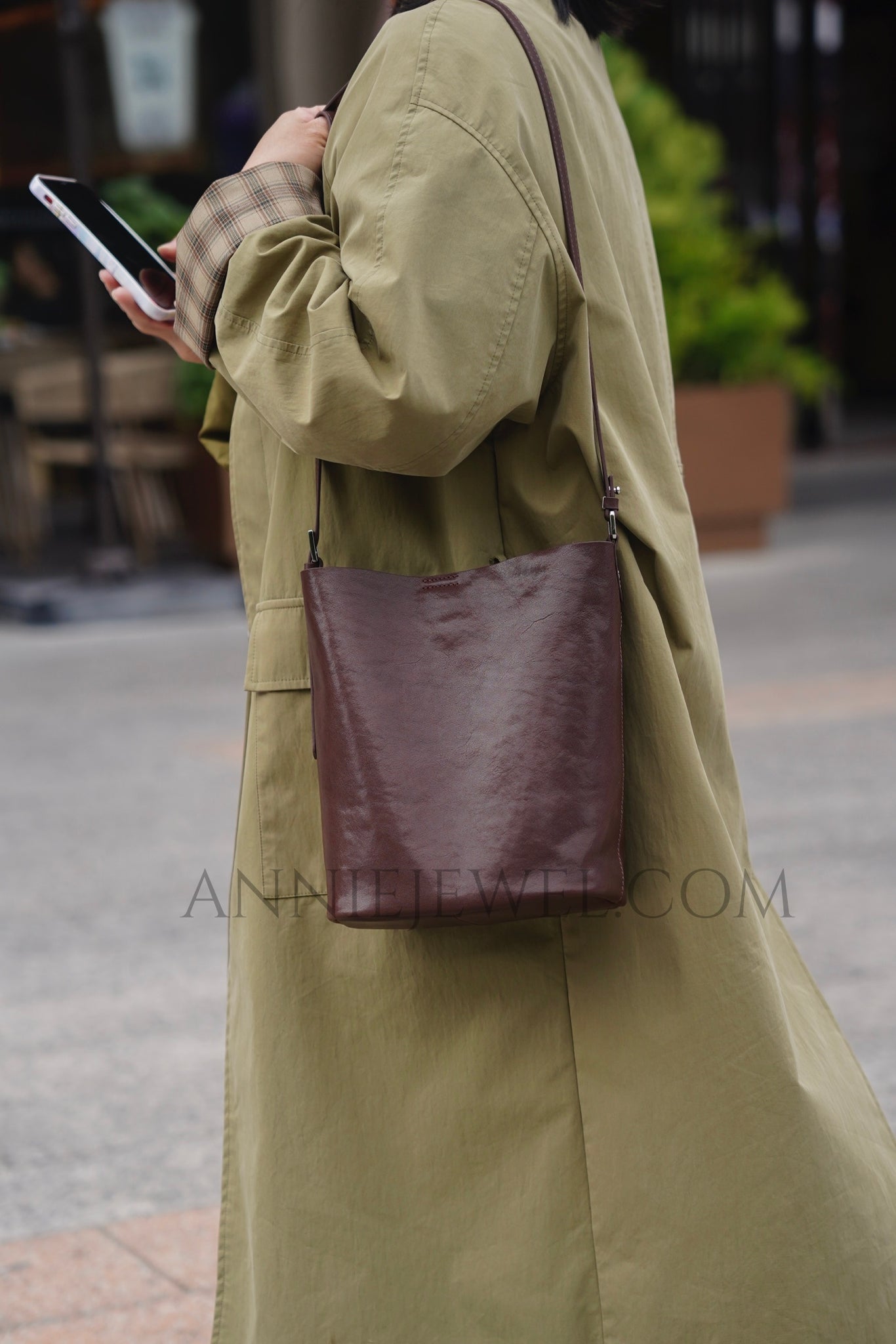 - Design: Small Genuine Leather Bucket Shoulder Bag Womens Brown Leather Bucket Bag