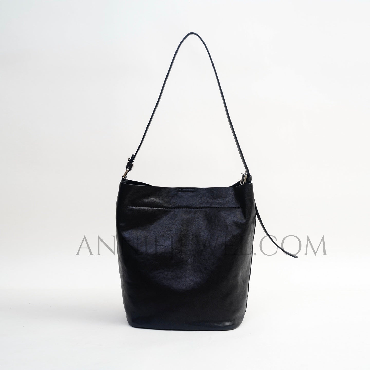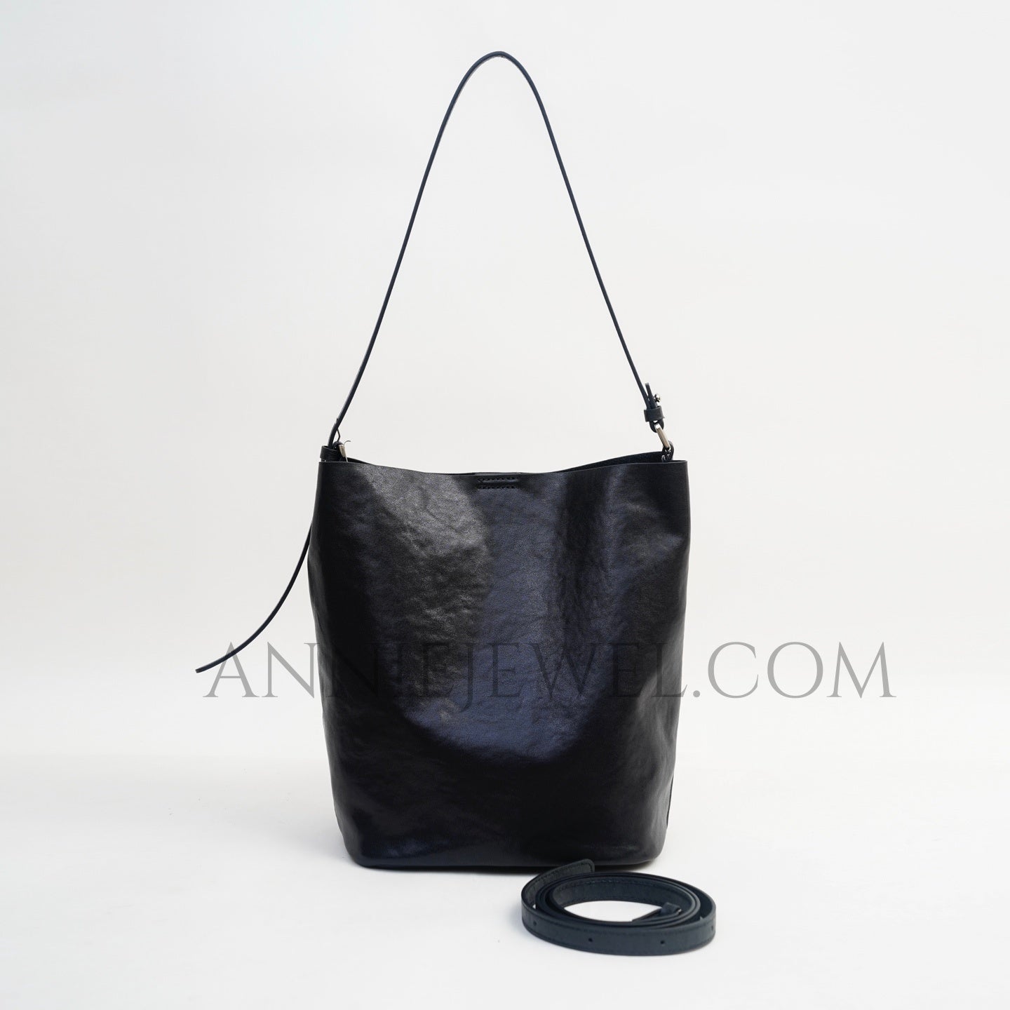 Black Leather Small Leather Bucket Bag Crossbody Hobo Purse Womens