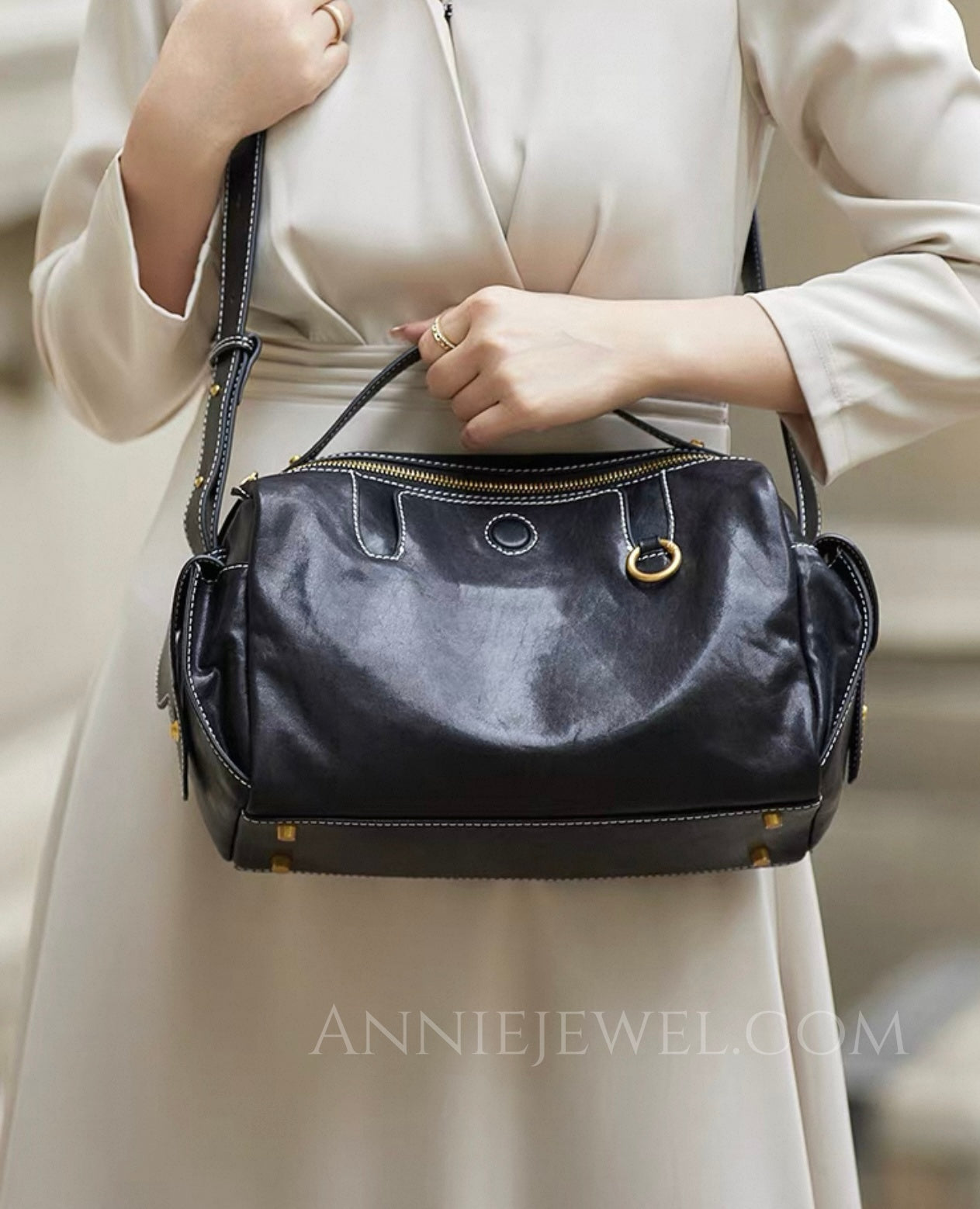 Leather Hobo Purses With Outside Pockets leather Hobo Bag With Zipper Womens
