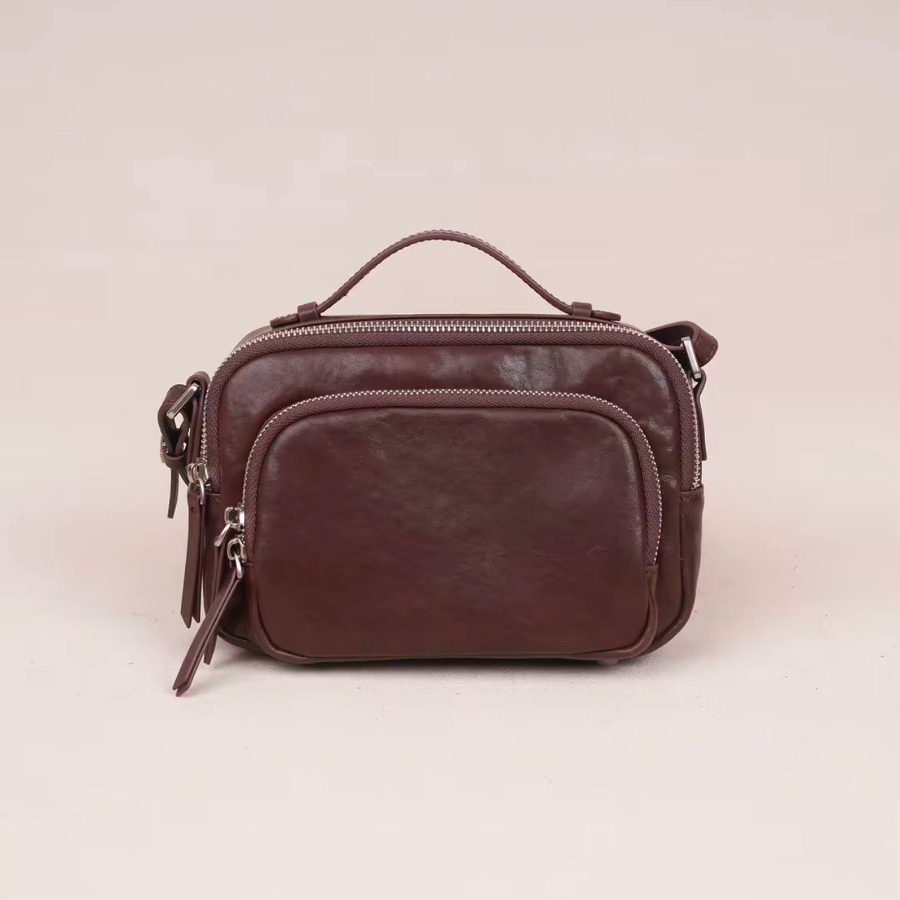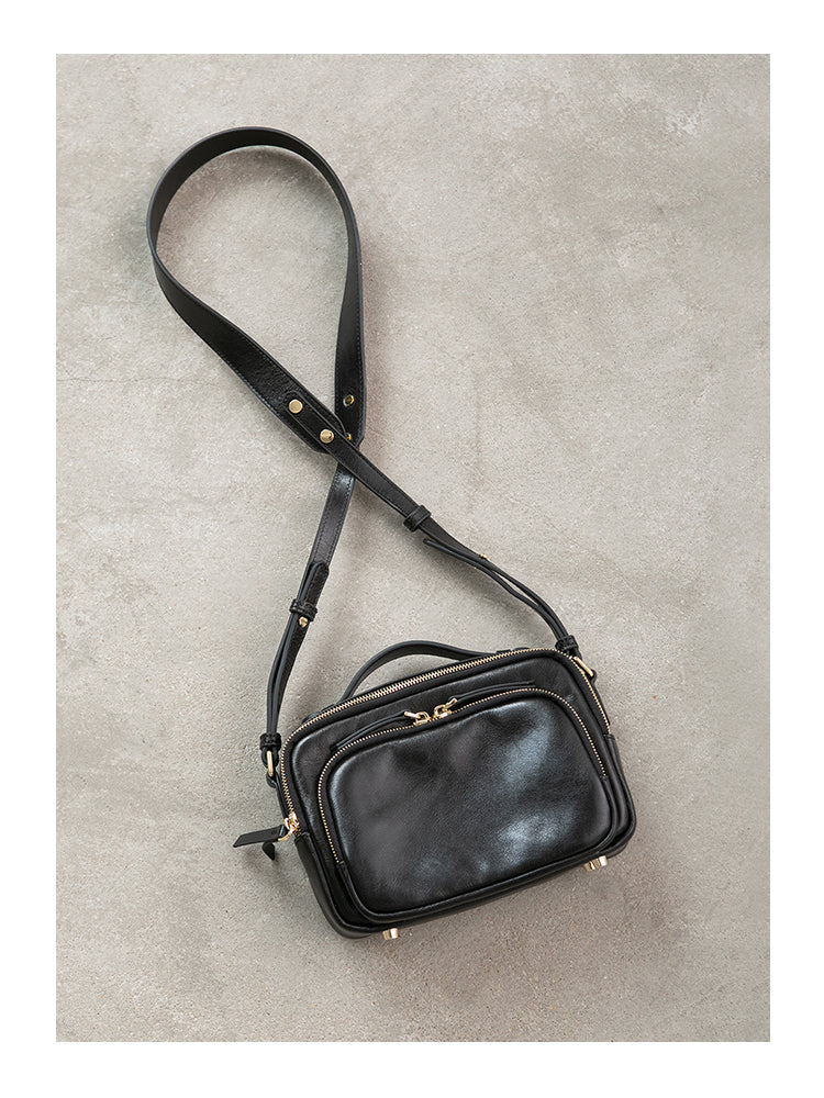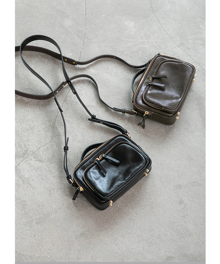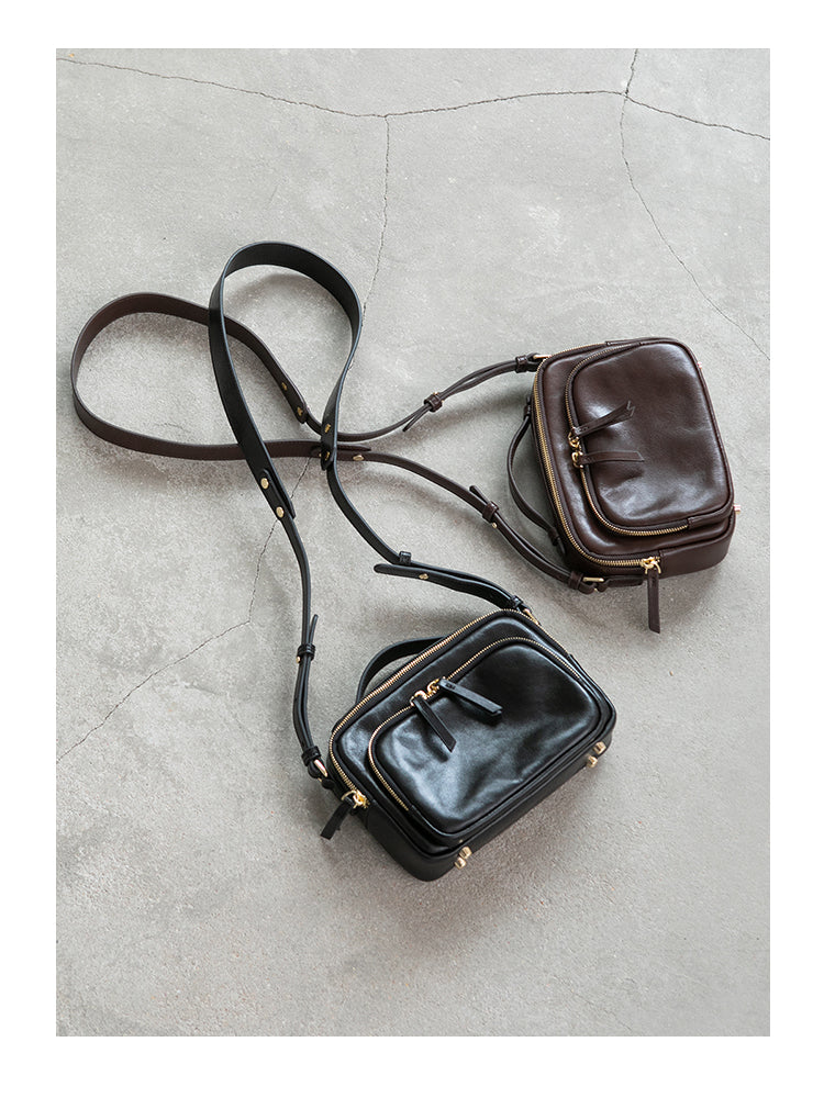 - Design: Genune Leather Double Zip Bag Double Zip Leather Crossbody Bag Womens