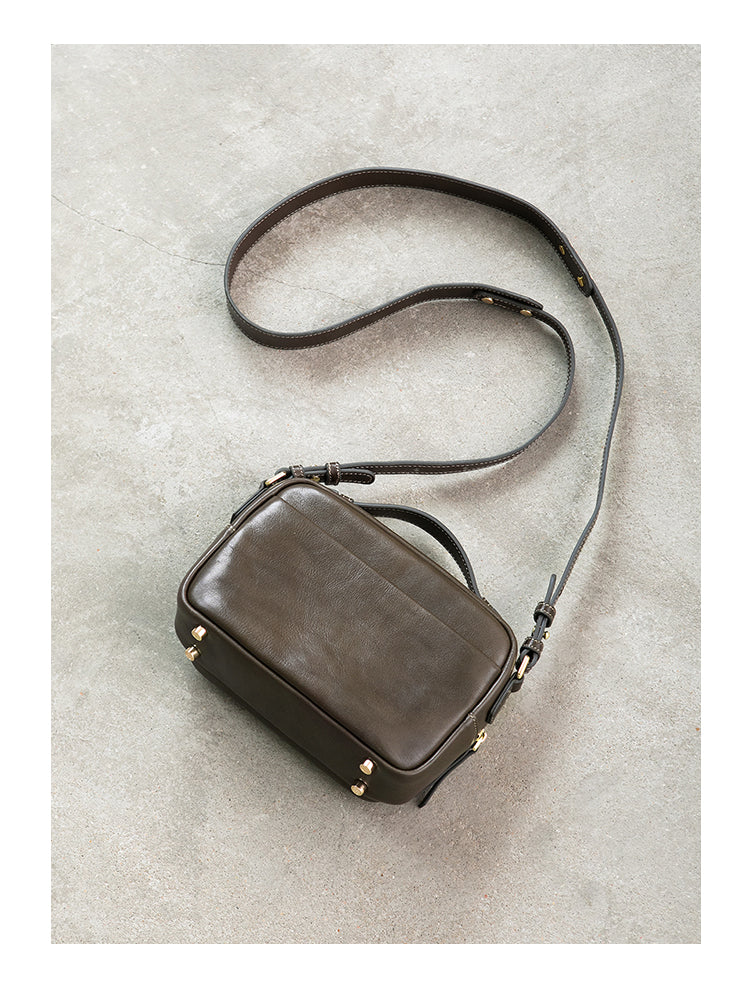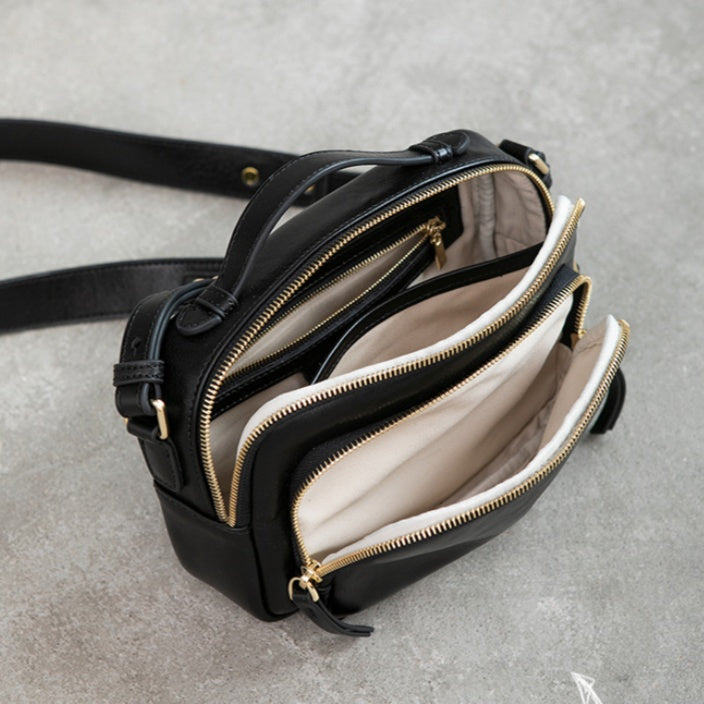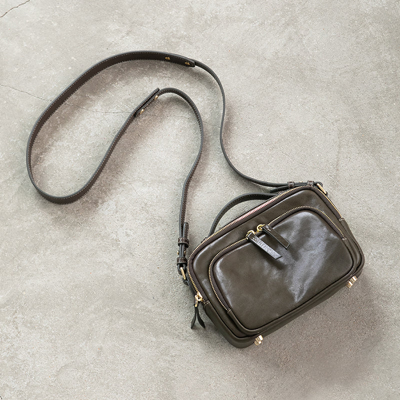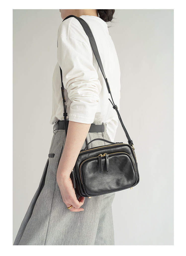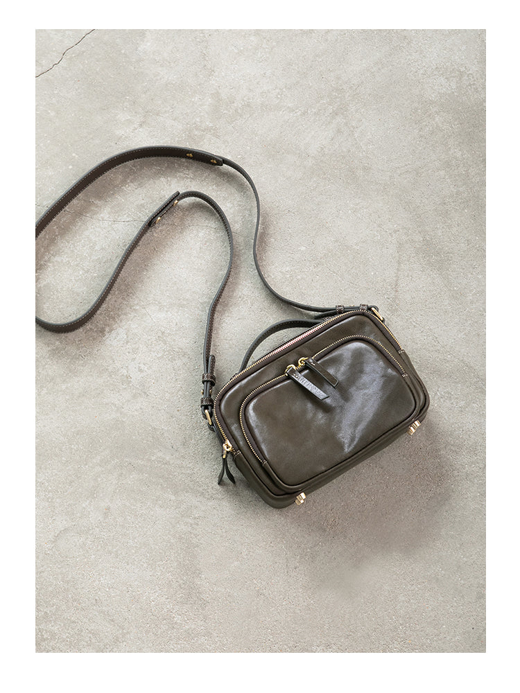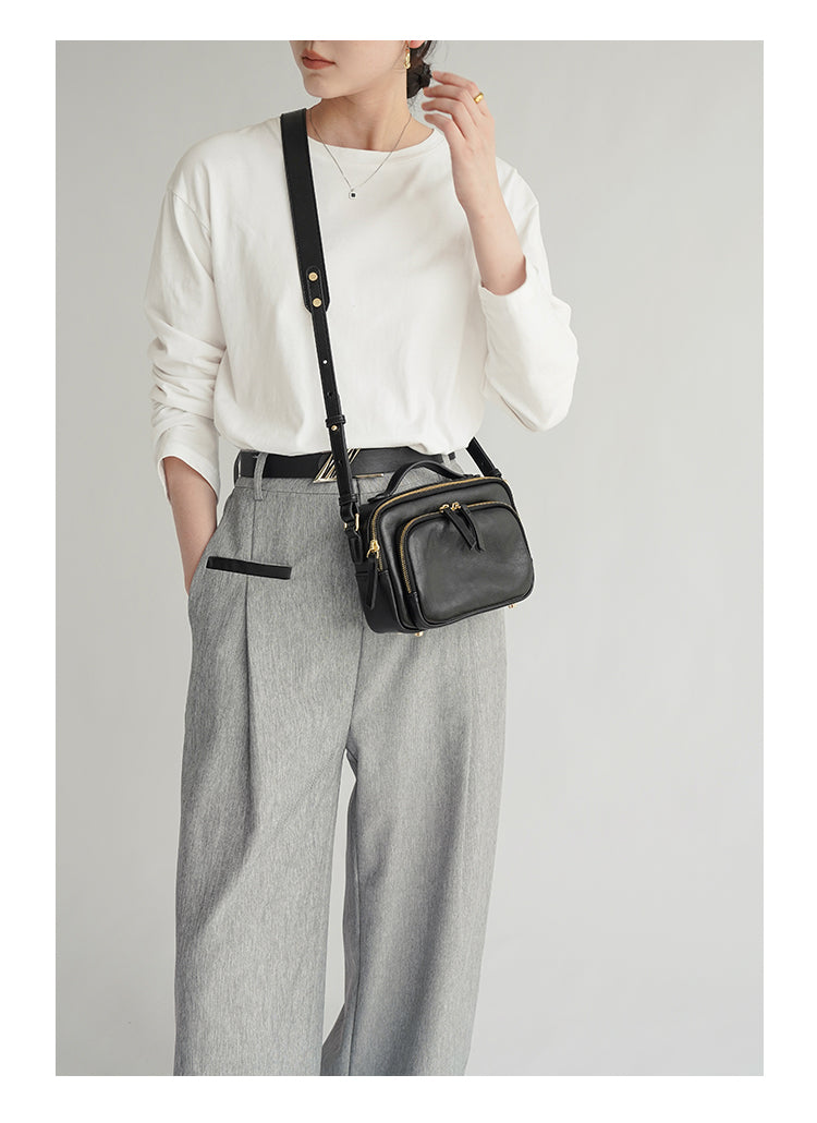 Genune Leather Double Zip Bag Double Zip Leather Crossbody Bag Womens