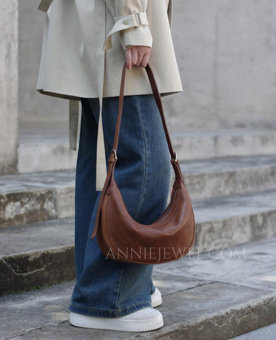 - Design: Half Moon Leather Bag Leather Half Moon Bag Half Moon Crossbody Bag Womens