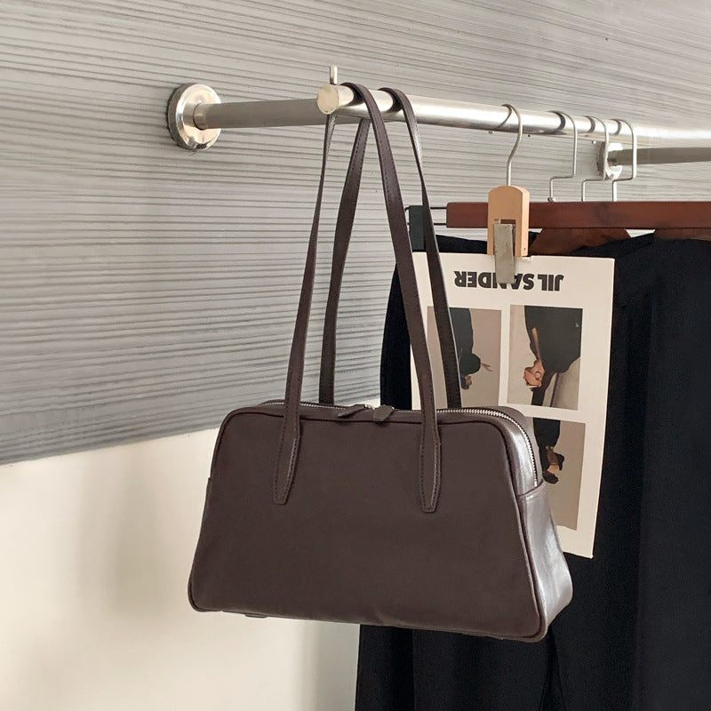 Dark Brown Leather Shoulder Bag Suede Leather Shoulder Bag Medium Women