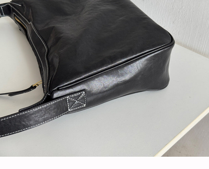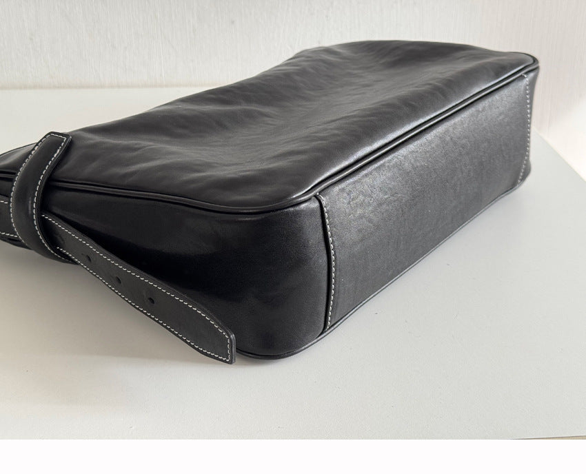 Include: A Bag With A StrapColor: BlackMaterial: First Layer Cowhide LeatherDimensions: