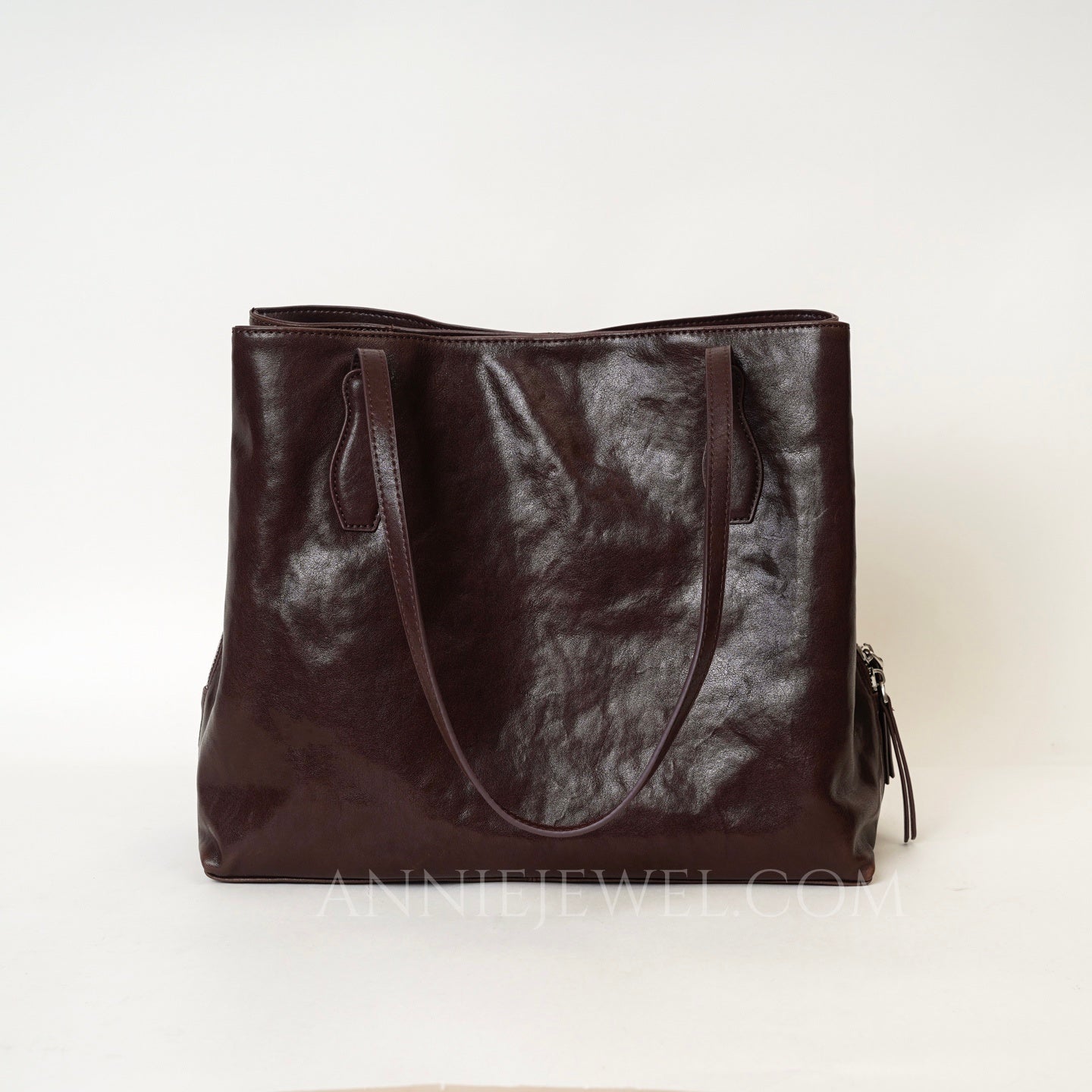brown Leather Tote Bag Medium Leather Tote Bag Womens Leather Work Tote - Annie Jewel