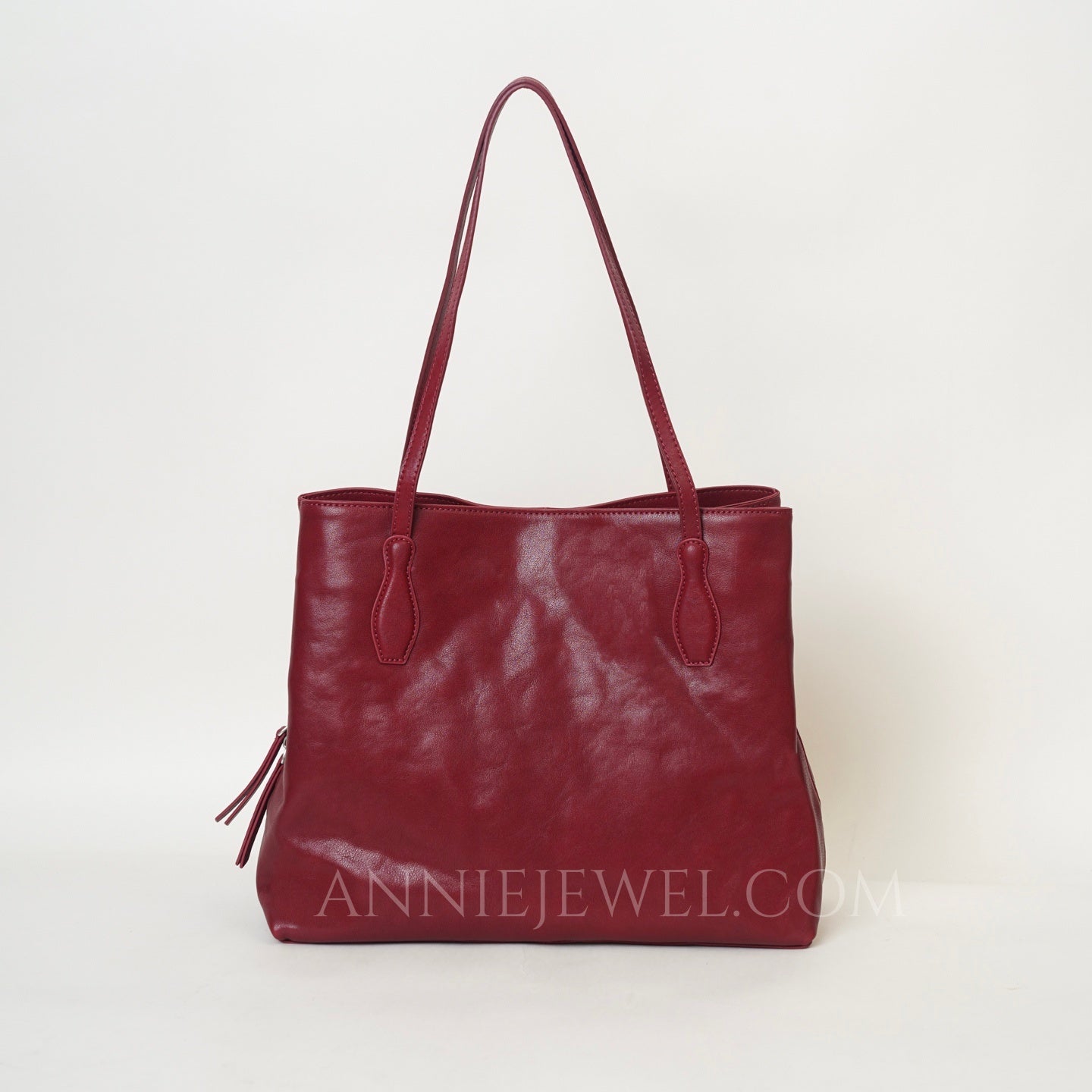 Burgundy Leather Tote Bag Medium Leather Tote Bag Womens Leather Work Tote - Annie Jewel