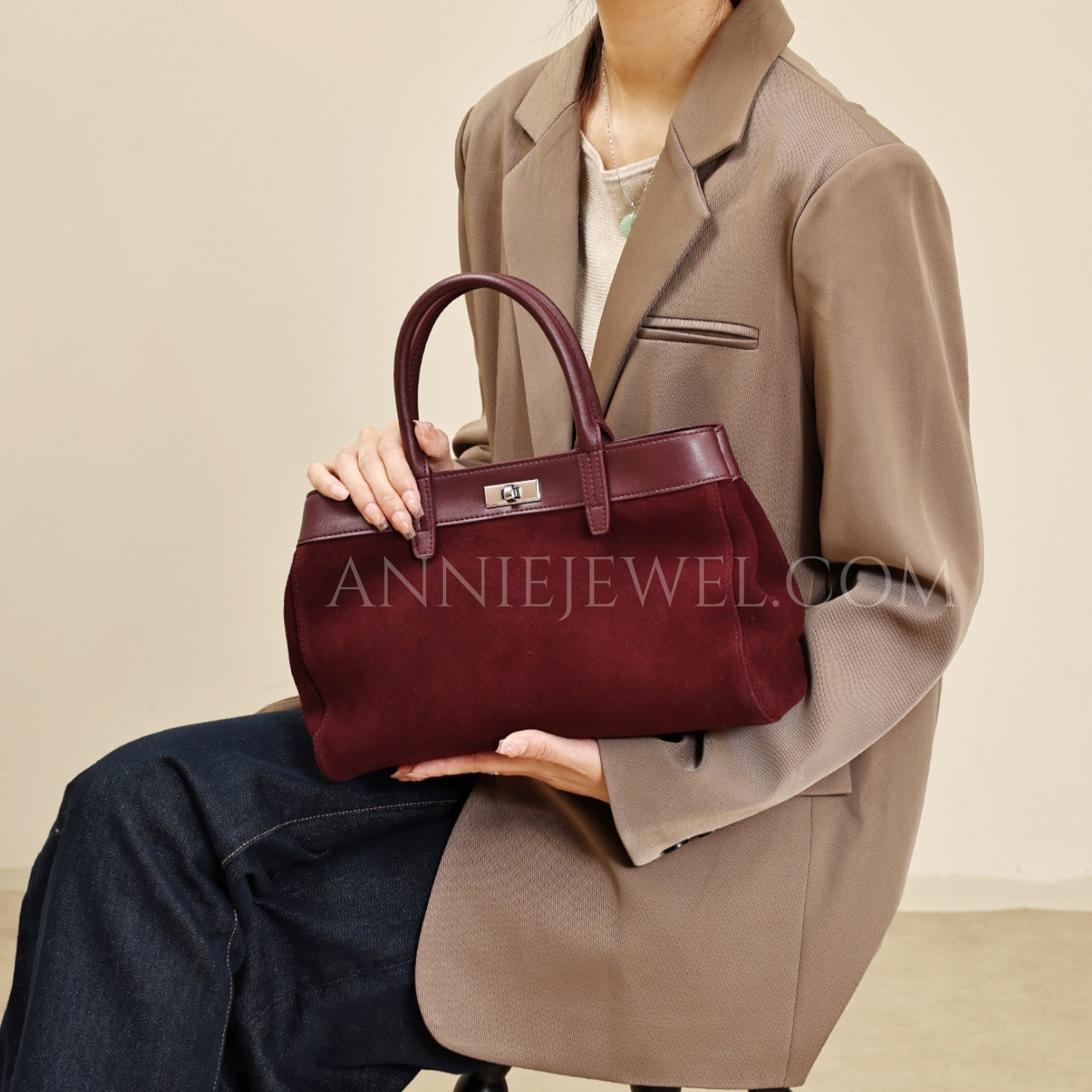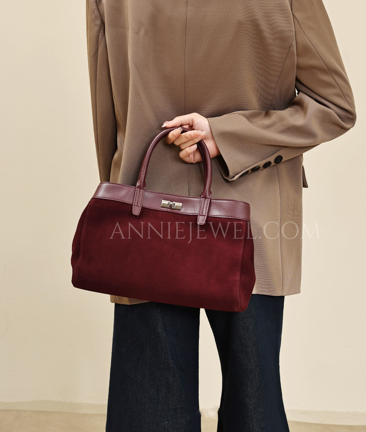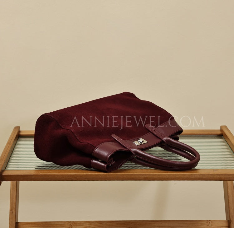 Genuine Leather Suede Tote Burgundy Leather Tote Bag Suede Leather Bag Womens - Annie Jewel