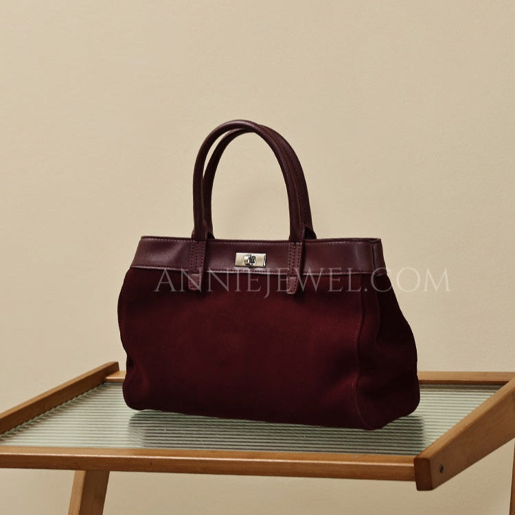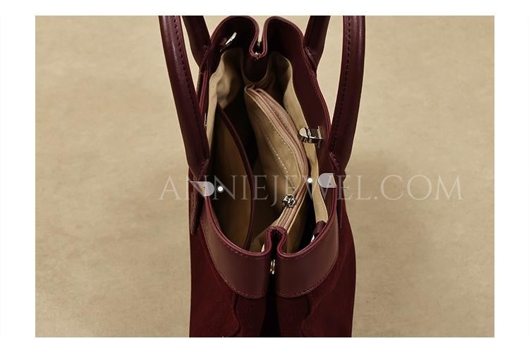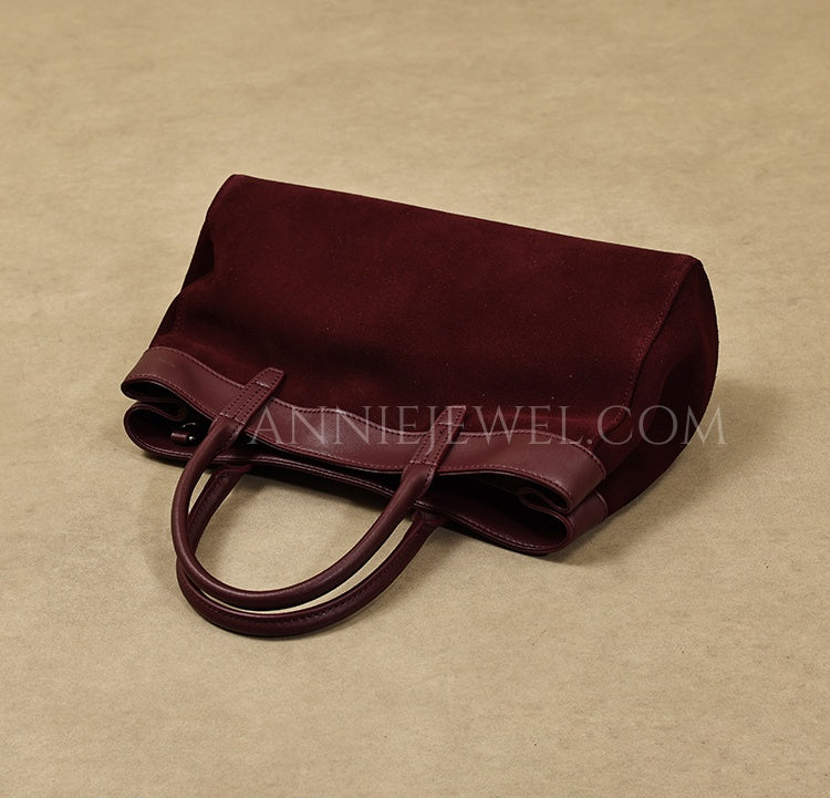 • Design: Genuine Leather Suede Tote Burgundy Leather Tote Bag Suede Leather Bag