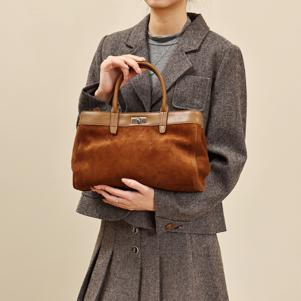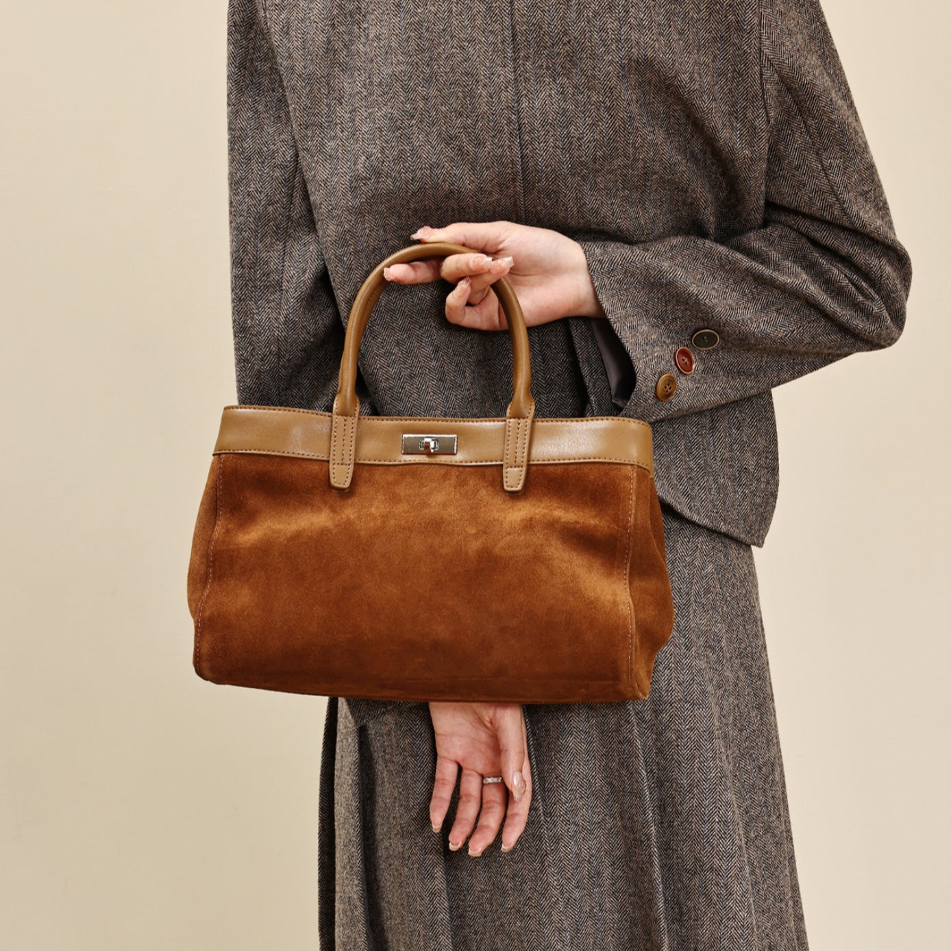 Women's Brown Suede Tote Bag Purses Suede Leather Tote Bag Tote Suede Bag