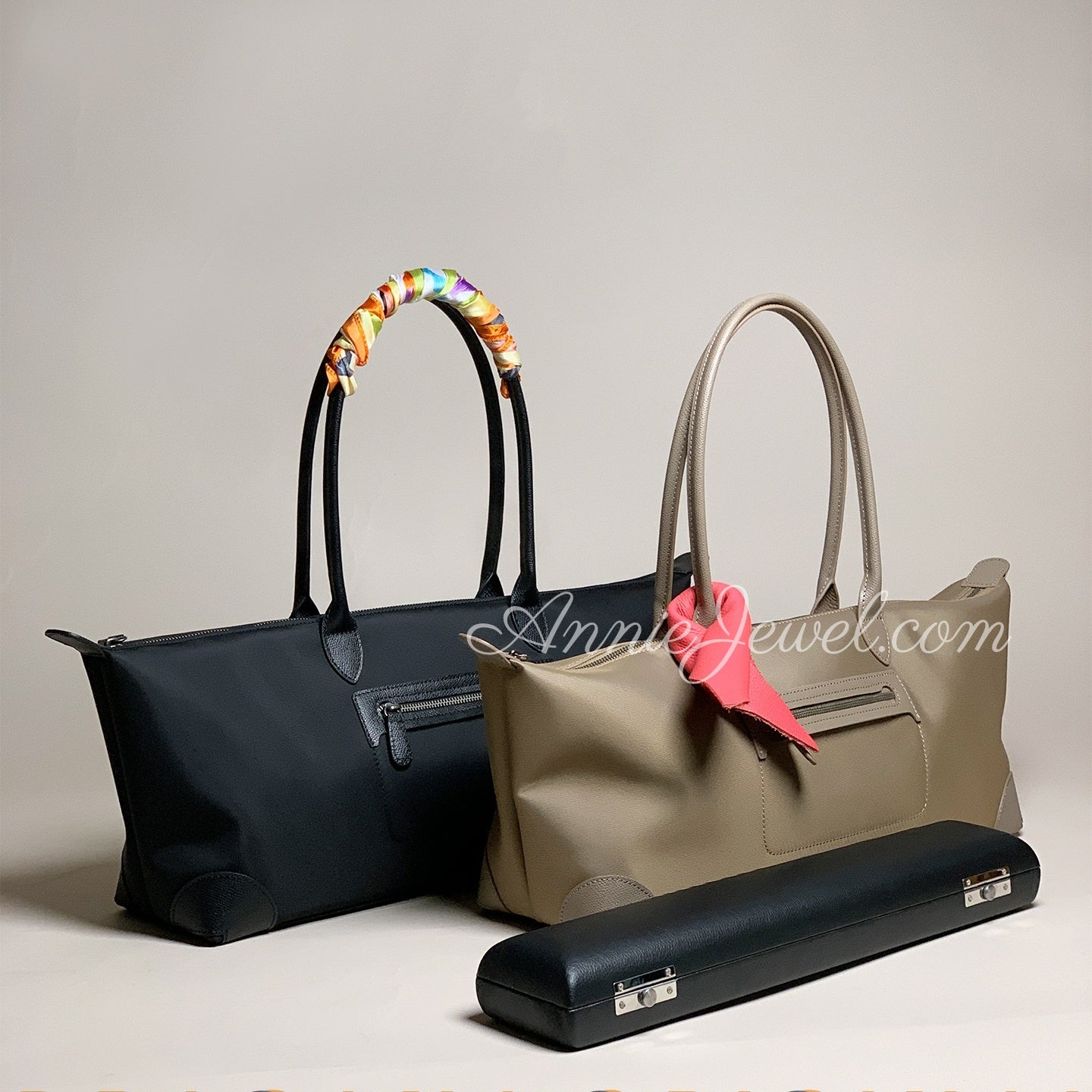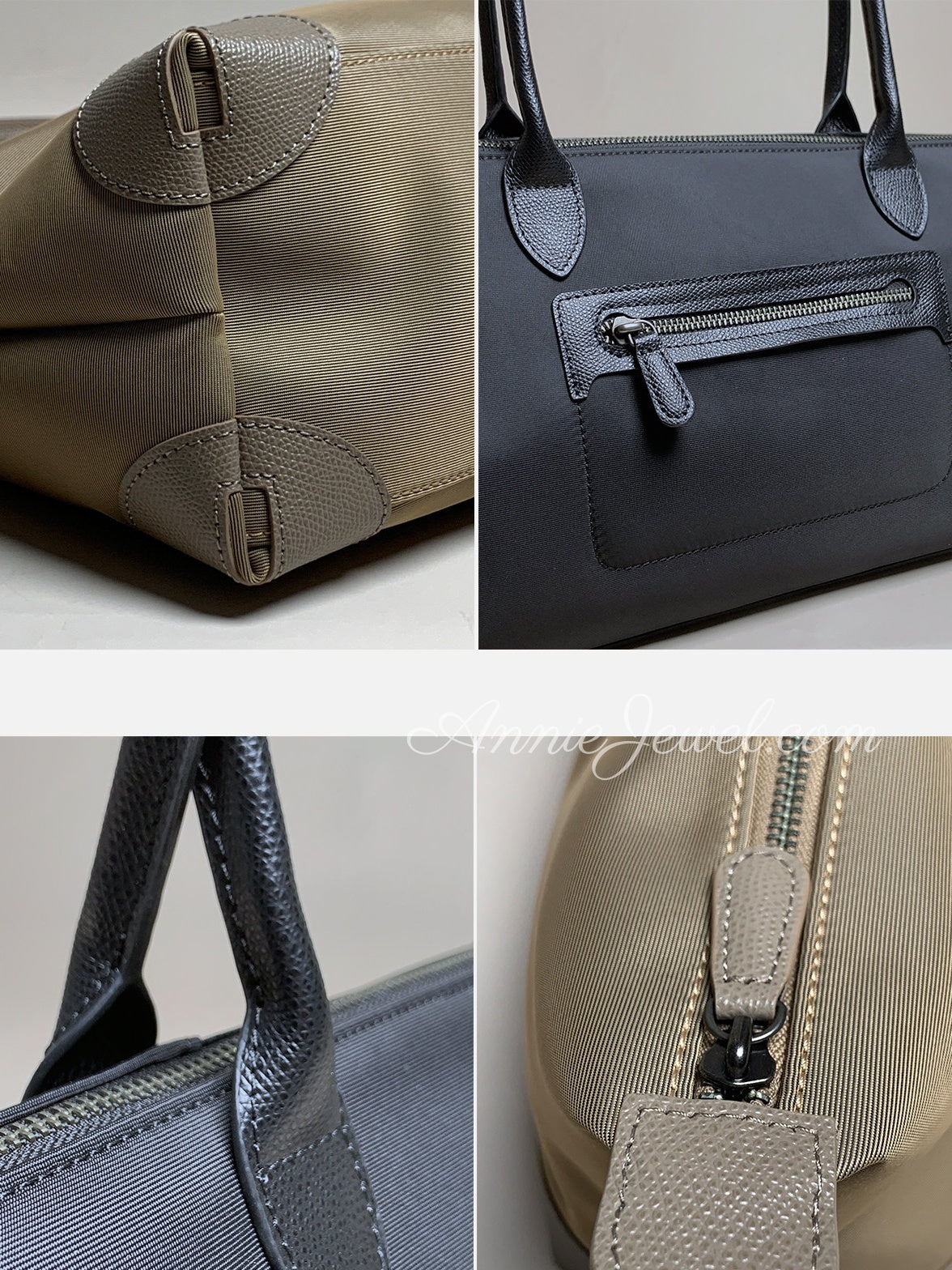 Structured Nylon Tote Bag With Zipper Minimalist Nylon Tote With Long Handles Womens