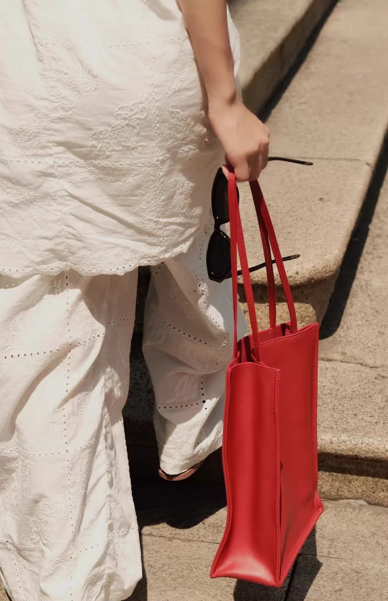 Minimalist Leather Tote Vertical Leather Tote Bag Tall Leather Tote Womens