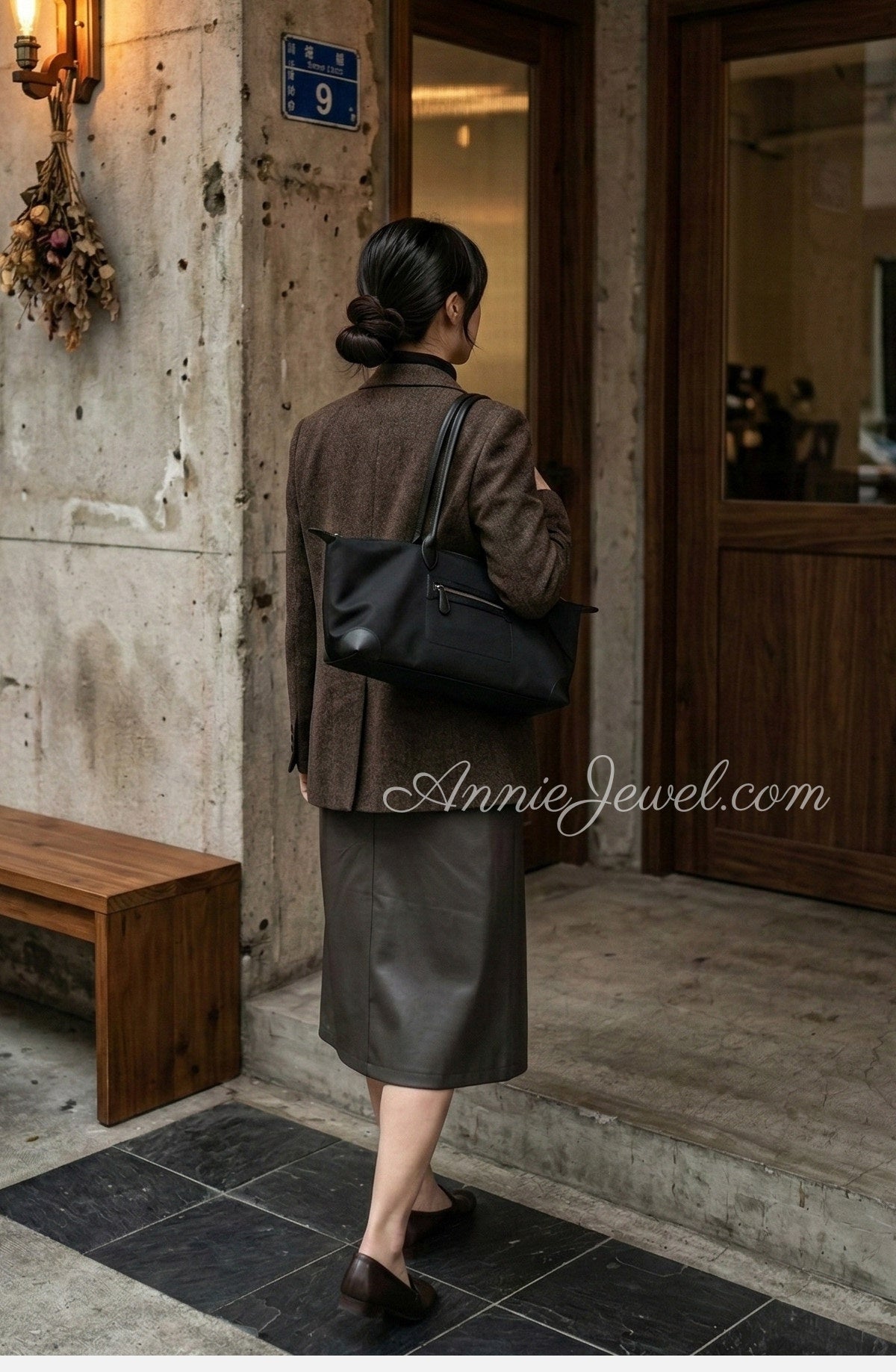 Structured Nylon Tote Bag With Zipper Minimalist Nylon Tote With Long Handles Womens - Annie Jewel