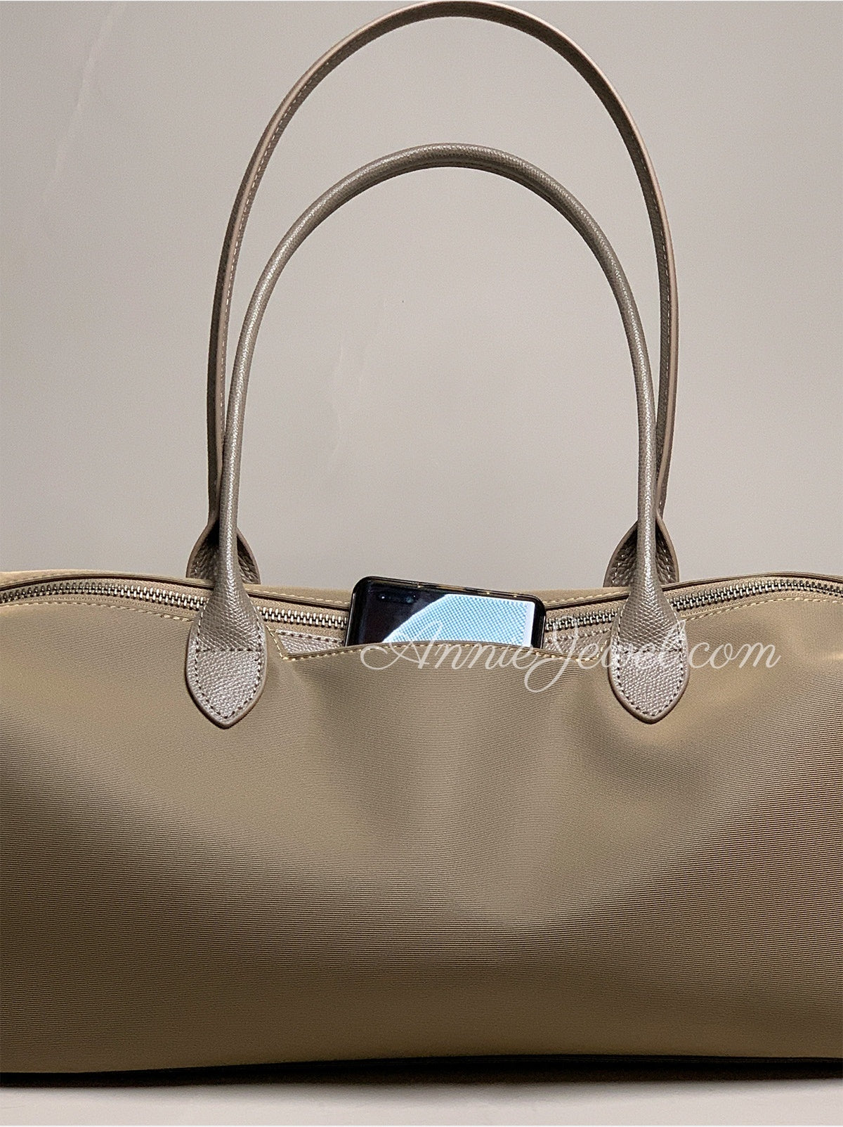 inner of Nylon Tote Bag With Zipper Minimalist Nylon Tote With Long Handles Womens - Annie Jewel