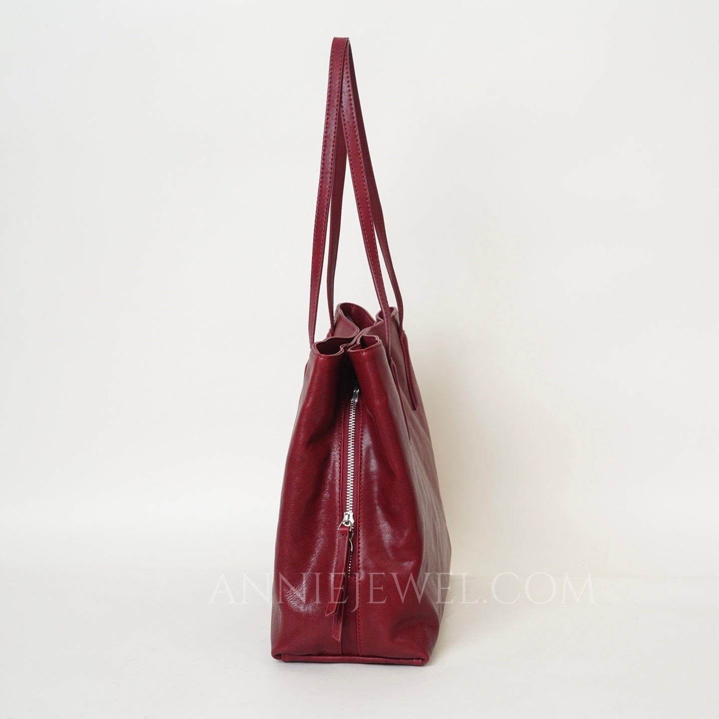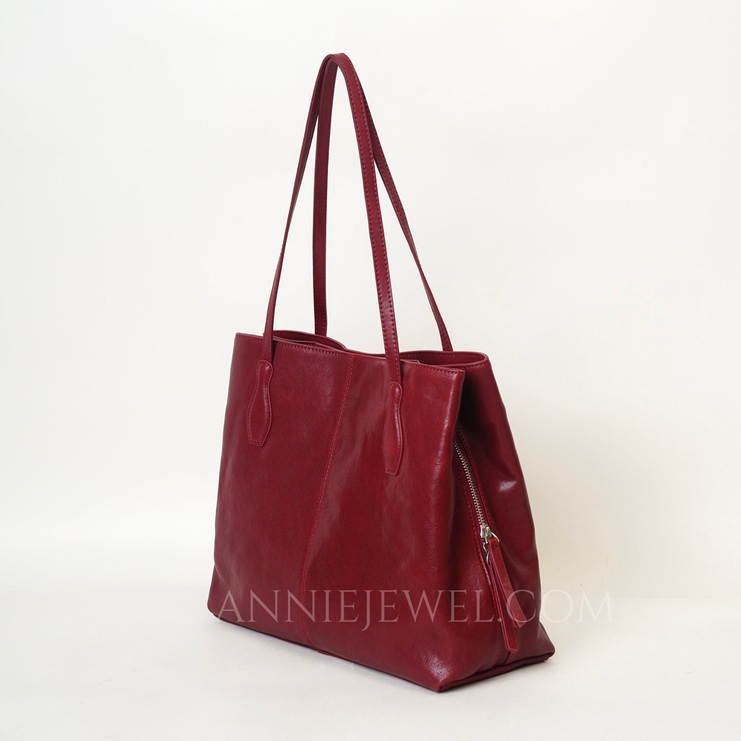 Womens burgundy Leather Tote Bag Genuine Leather Tote Bag With Zipper - Annie Jewel