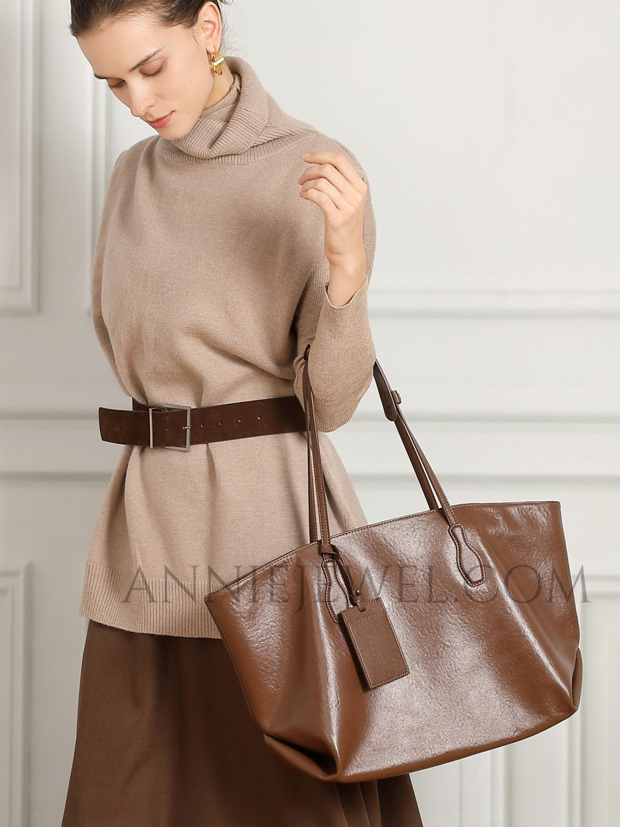 Genuine Leather Tote Bags For Women Cowhide Tote Minimalist Leather Tote Bag