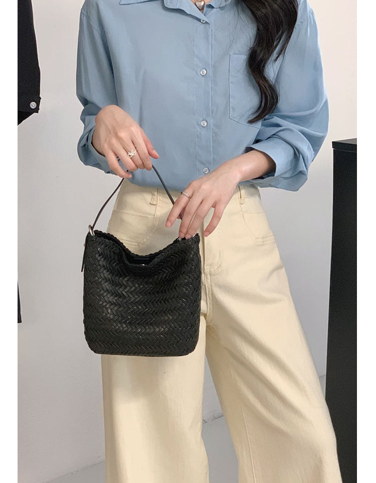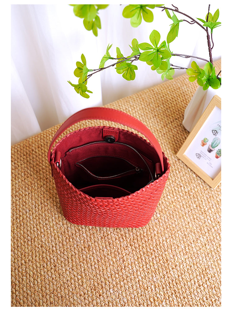 - Design: Small Woven Bucket Bag Woven Leather Bucket Bag Shoulder Bag Womens