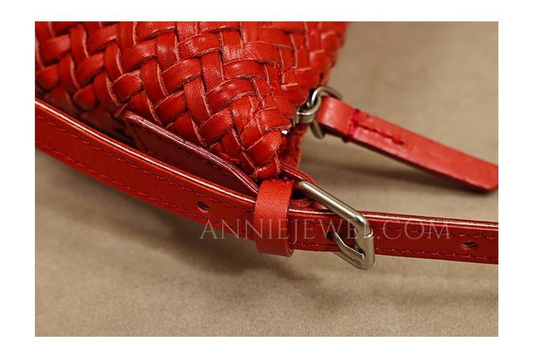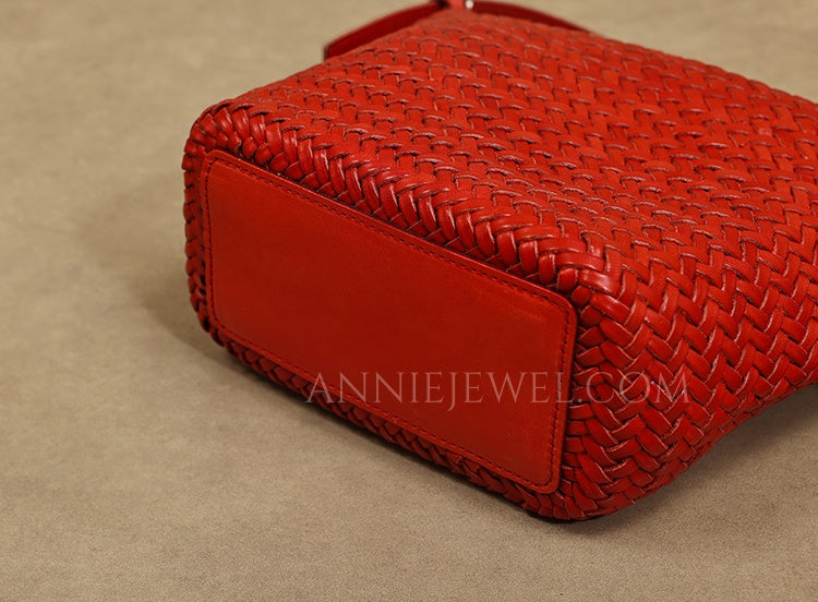 Black Woven Leather Bucket Bag Genuine Leather Bucket Shoulder Bag Womens